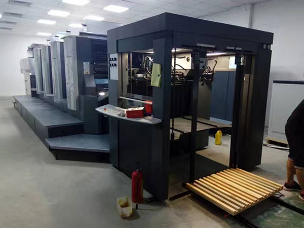 本公司開發生產了一種印刷機預裝紙裝置,適用于國內外各品牌印刷機,用于印刷機進紙的可垂直升降的進紙托盤,其特征在于: 在印刷機進紙托盤上安裝導軌,進紙托盤上導軌與地面安裝的導軌對接,所述導軌和所述進紙托盤之間還設置一個垂直于所述進紙托盤的縱長的定位尺。新型的印刷機預裝紙裝置通過導軌可以精確定位小平板車,再通過定位尺對其上的紙張進行定位,從而快速準確地對小平板車上的紙張進行定位作業。本實用新型的印刷機預裝紙置具有結構簡單,高效,定位準確等優點。