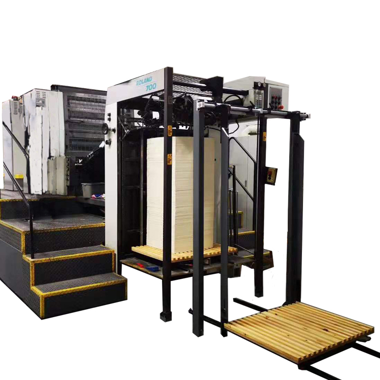 本公司開(kāi)發(fā)生產(chǎn)了一種印刷機(jī)預(yù)裝紙裝置,適用于國(guó)內(nèi)外各品牌印刷機(jī),用于印刷機(jī)進(jìn)紙的可垂直升降的進(jìn)紙托盤,其特征在于: 在印刷機(jī)進(jìn)紙托盤上安裝導(dǎo)軌,進(jìn)紙托盤上導(dǎo)軌與地面安裝的導(dǎo)軌對(duì)接,所述導(dǎo)軌和所述進(jìn)紙托盤之間還設(shè)置一個(gè)垂直于所述進(jìn)紙托盤的縱長(zhǎng)的定位尺。新型的印刷機(jī)預(yù)裝紙裝置通過(guò)導(dǎo)軌可以精確定位小平板車,再通過(guò)定位尺對(duì)其上的紙張進(jìn)行定位,從而快速準(zhǔn)確地對(duì)小平板車上的紙張進(jìn)行定位作業(yè)。本實(shí)用新型的印刷機(jī)預(yù)裝紙置具有結(jié)構(gòu)簡(jiǎn)單,高效,定位準(zhǔn)確等優(yōu)點(diǎn)。